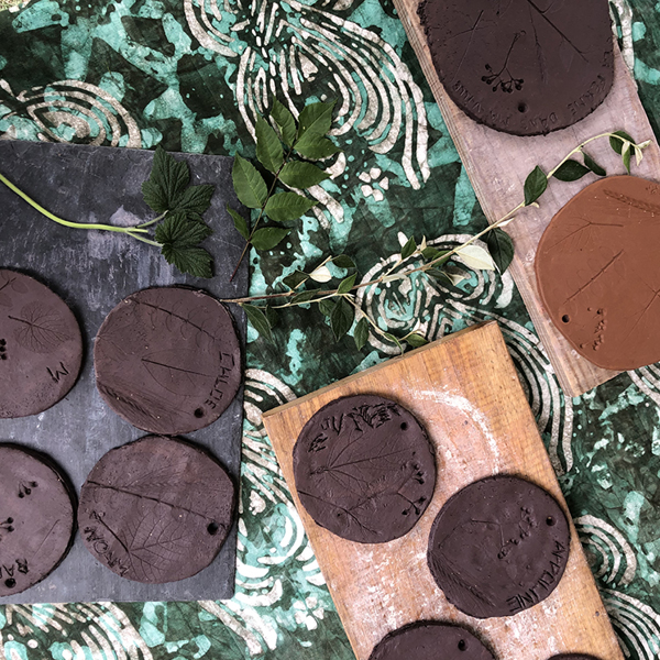 Carte ensemencée, empreinte végétale sur argile ou tissu, petites bêtes en argile, Land Art, préparation de sels aromatiques, aromates, tisanes…